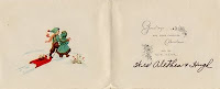I found this wonderful birthday postcard in Grammie's papers. Since this card was obviously hand delivered, I am pretty sure it was from Grammie's best friend, Martha. I'm not sure who Bonnie was, but apparently she was one of Grammie's teachers (probably at church). It looks like Martha's name may have been added later, as it is in ink instead of pencil.
